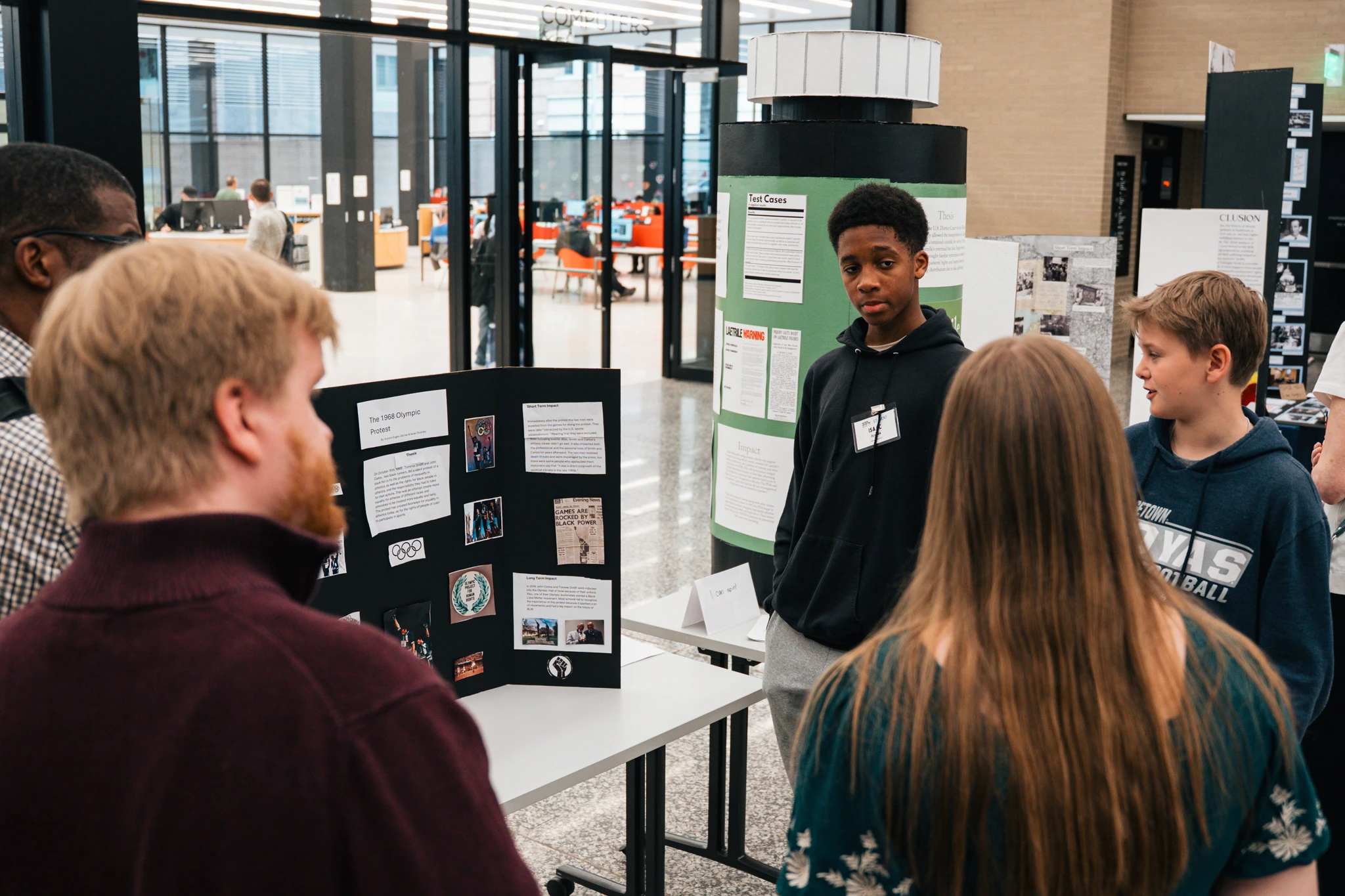On March 15, 2025 more than 90 students and their cheer squad composed of caregivers, teachers, DC History Center staff, and MLK Library goers, participated in the first in-person National History Day in DC contest since 2019. Ranging from grades 6–12, students composed projects on a variety of topics, all related to this year’s National History Day theme, Rights and Responsibilities in History. Spanning all five categories—paper, exhibit, documentary, website, and performance—students competed against their peers who were in the same grade bands, categories, and submitted a project either individually or in a group of up to five people.
