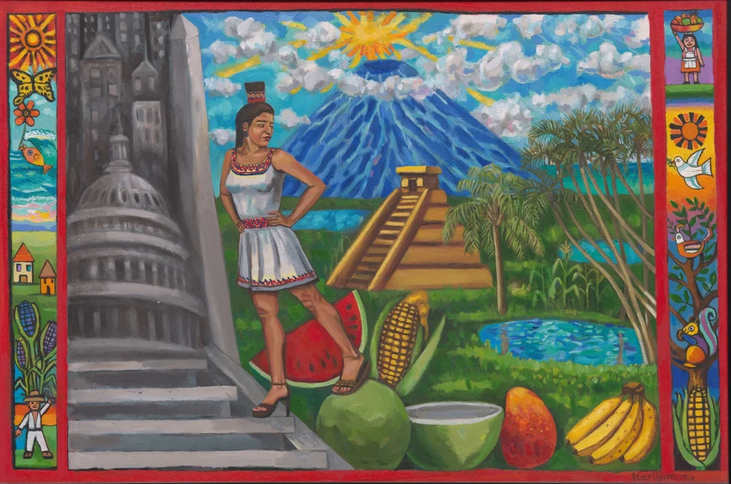 Washington History magazine featured this work in a discussion about contributions by Salvadoran artists in DC. Lamento Indigena [Indigenous Lament], oil painting, © Karlisima Rodas-Israel. Courtesy Ana Patricia Rodríguez