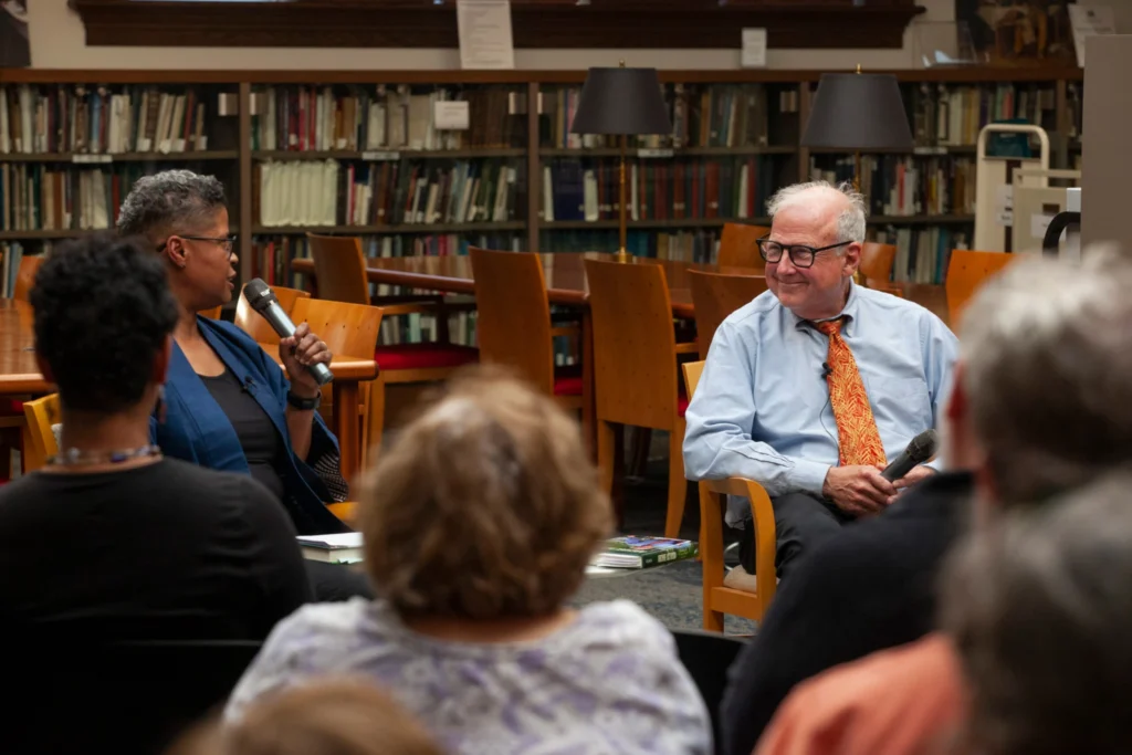 Moderator Kerrie Cotten Williams discusses “Archive Activism: Memoir of a ‘Uniquely Nasty’ Journey” with author Charles Francis, September 2023. Photo by Anne McDonough.